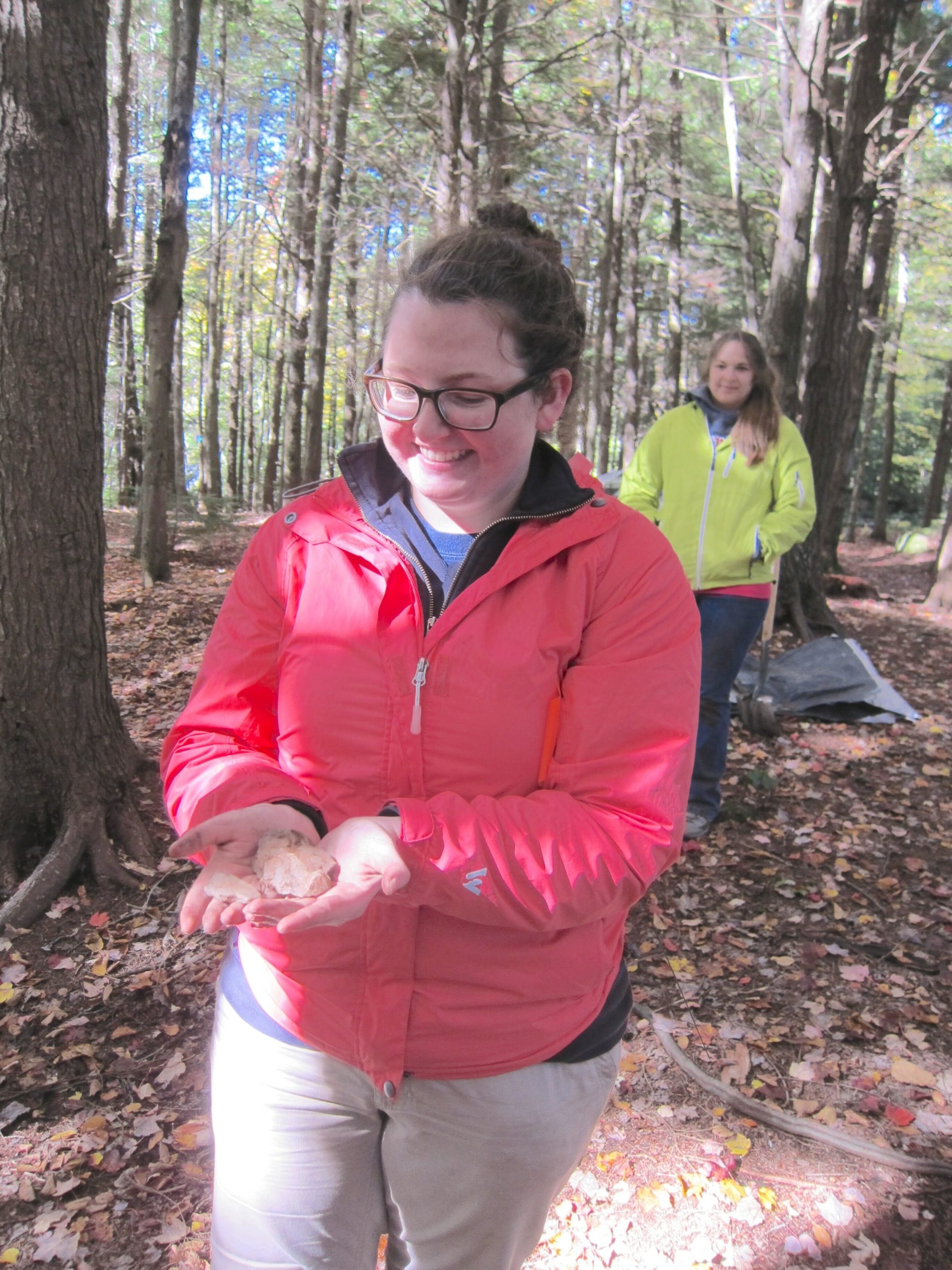To the layperson, three pieces of rock may not seem very important or interesting; however, the pieces have actually raised new questions about Native American activity in the Grantham area, and, specifically, how people were using the land in what is now Eastman. The biface found is not diagnostic, meaning there is no way to tell how old it is, and the flakes tell us that people were producing or maintaining tools on the island. Native Americans had clearly been on this land but seem not to have ever settled on the sites we excavated.